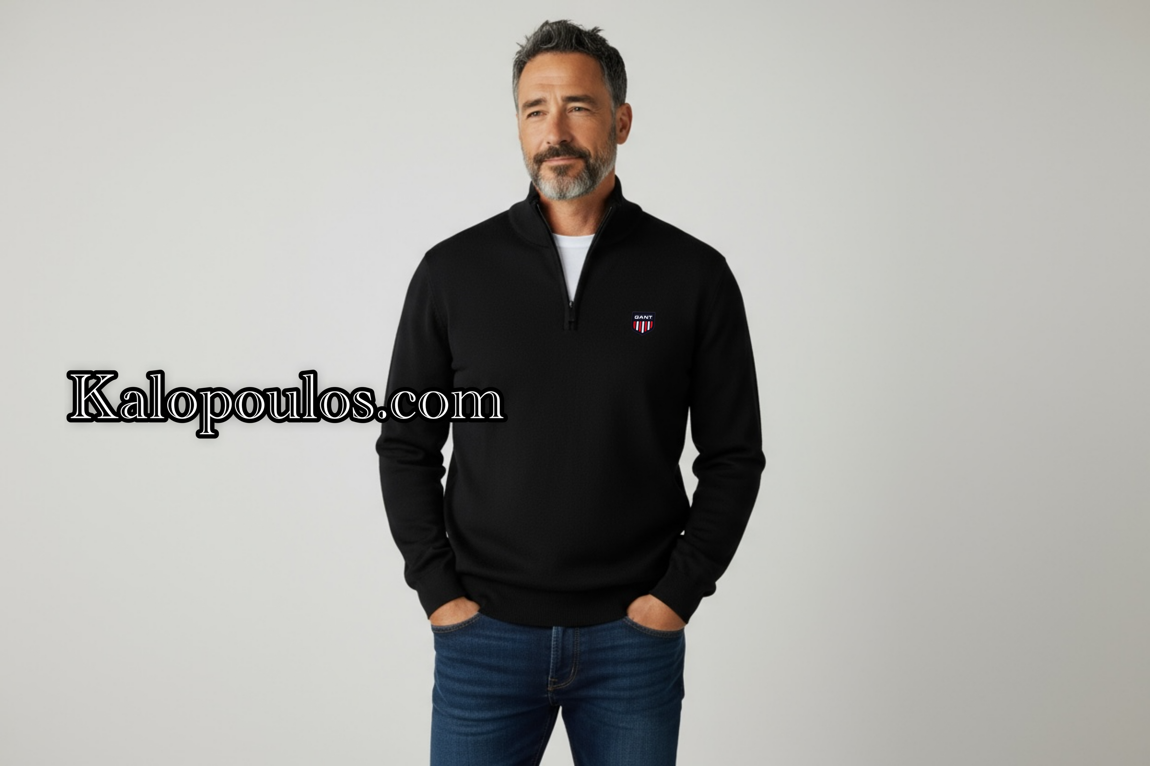 HALF ZIP ΠΛΕΚΤΗ ΜΠΛΟΥΖΑ GANT ΜΑΥΡΗ