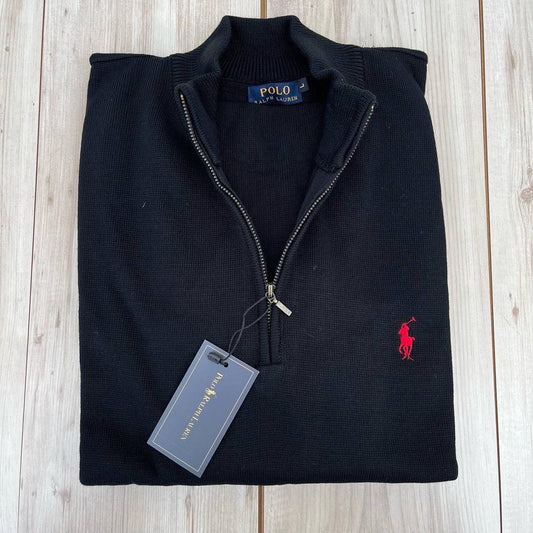 Πλεκτή μπλούζα Polo με μισό φερμουάρ μαύρη